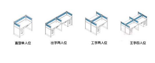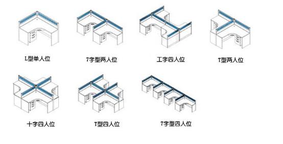 1、L型辦公桌有多種擺放方式,通過排列組合的形式,擺放成各種形狀,四個一起可擺放成十字型,兩個位靠墻可擺放成T型,還比如一字型和F型,可以說,能使整個辦公空間更能得到更充分的利用。