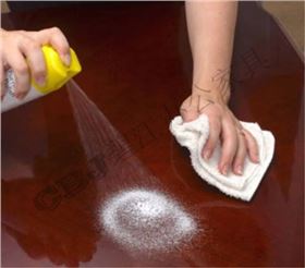 3、桌椅上有時會出現一圈圈的污漬,只要撒點鹽,再滴點沙拉油,便能刷除干凈。汽油或松節油也能去除,但為避免桌面脫漆,最好還是用鹽擦拭,真的無法清除時,再使用上述清潔劑。