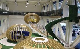 看了谷歌的休息區之后再看看國內互聯網巨頭的休息區設計——“鳥籠”。這是360總部的員工休息區設計,鳥籠設計似乎更加迎合了程序員“宅”的特點,而這個滑梯通道的設計明顯抄襲硅谷的員工通道設計。但是360休息區的整體設計在國內互聯網中以及算是“走在時尚前沿”了。